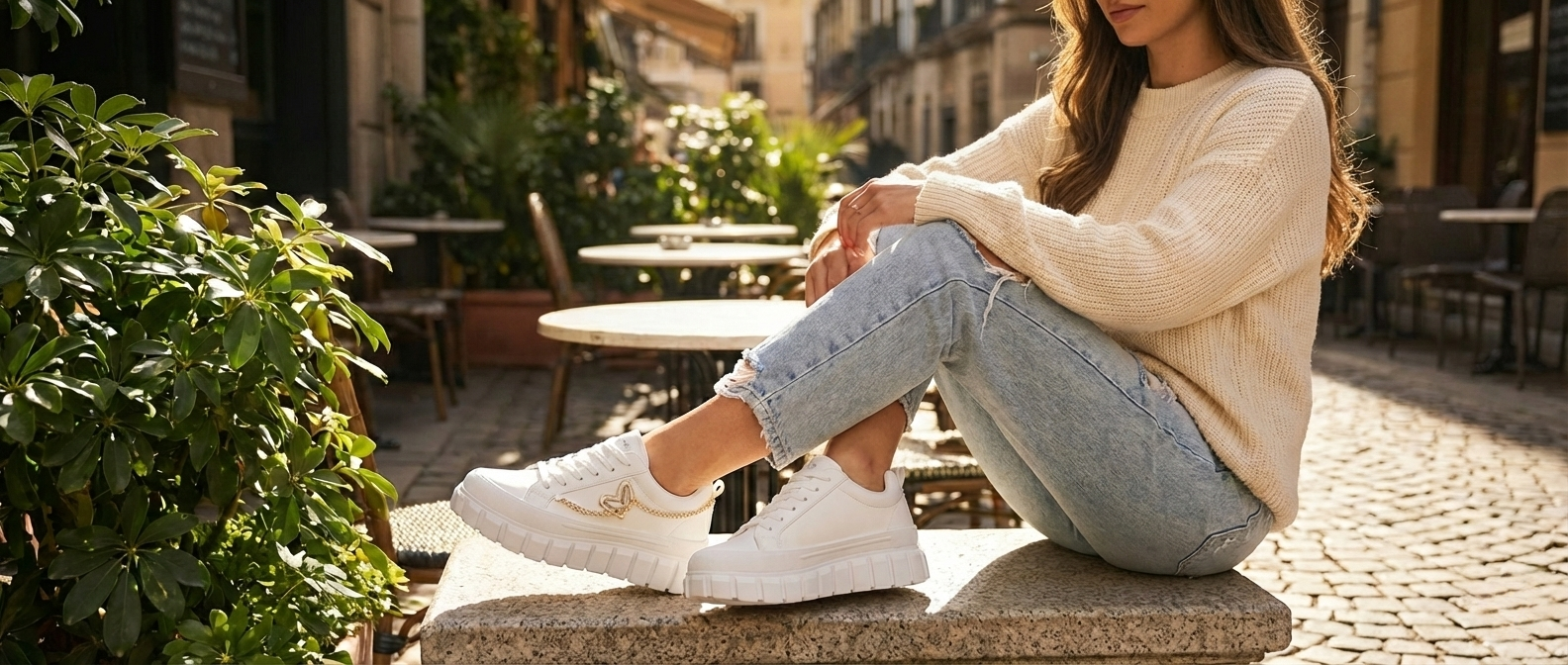 Trendy High Sole White Sneakers for Ladies